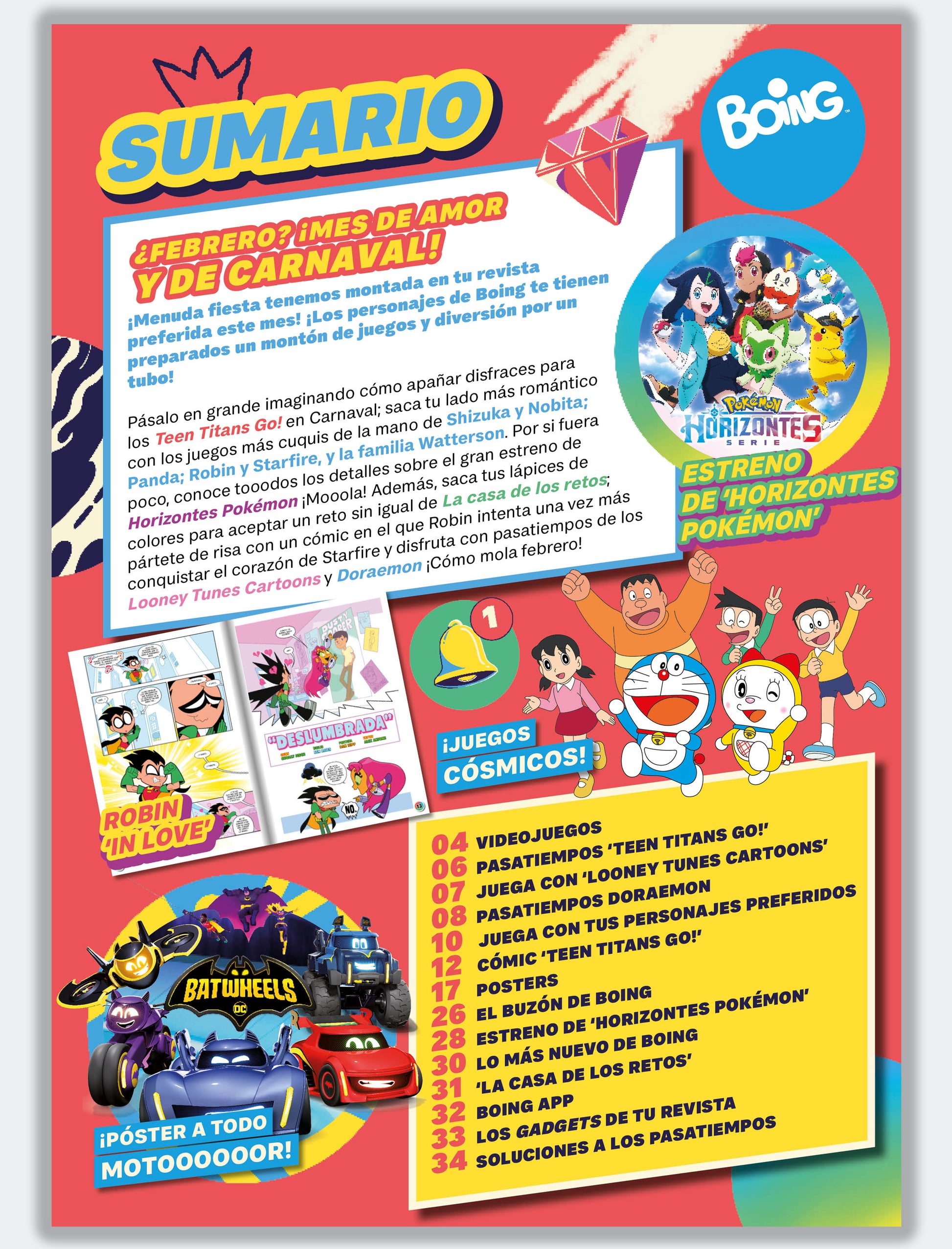 Crea la apariencia más divertida para unos Titans muy carnavaleros; atrévete con los retos que te propone Doraemon; disfruta con los juegos más cuquis y romanticones de tus series preferidas, y pásalo en grande con una lectura enigmática en compañía de ¡Scooby-Doo! Y sus amigos.